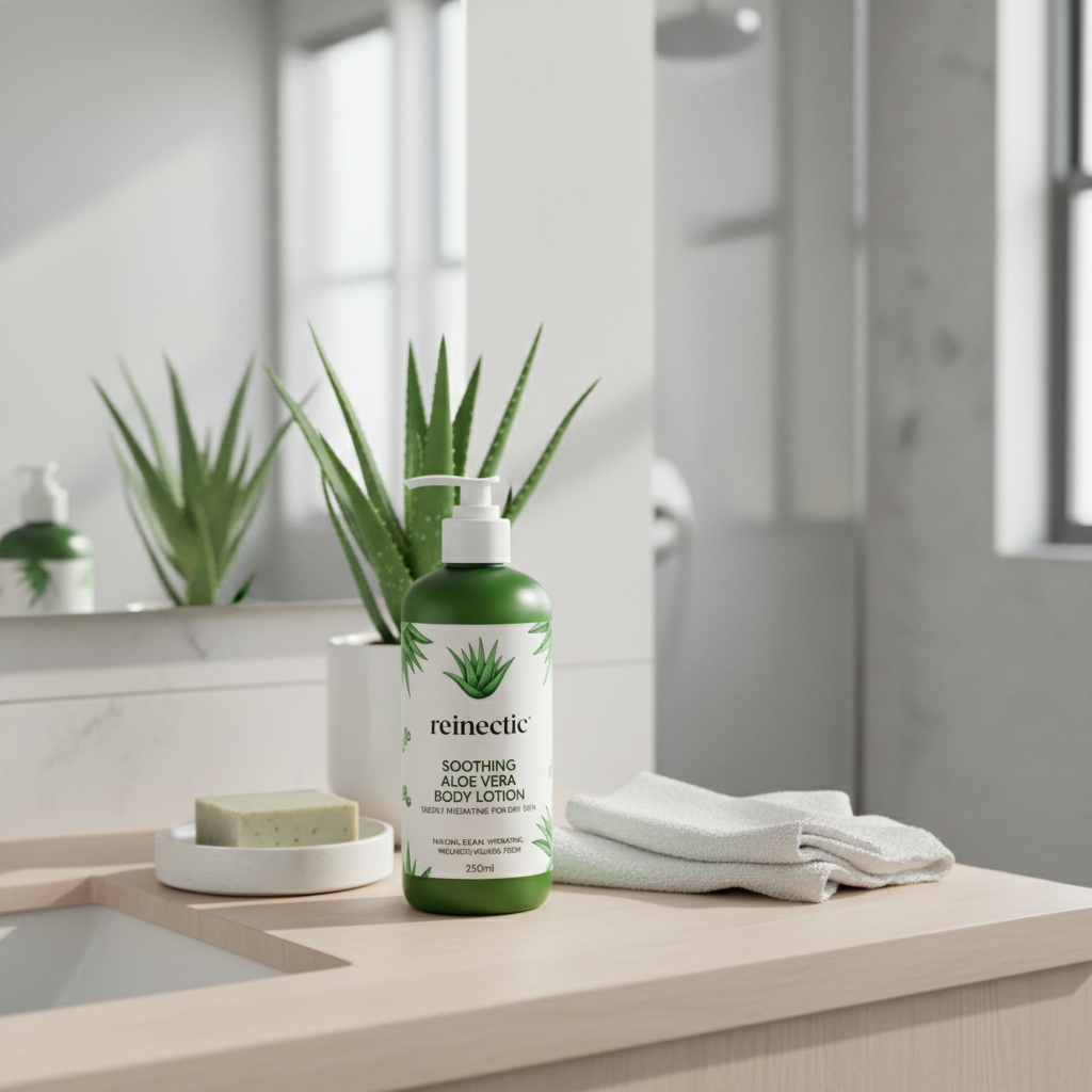 Quench your skin’s thirst with reinetic’s Soothing Aloe Vera Body Lotion. This lightweight, fast-absorbing formula provides immediate relief and lasting hydration, leaving your skin feeling incredibly soft, smooth, and refreshed. Perfect for daily use, it restores your skin’s natural radiance and healthy glow.